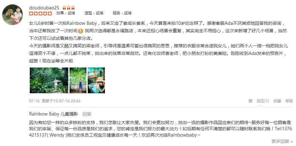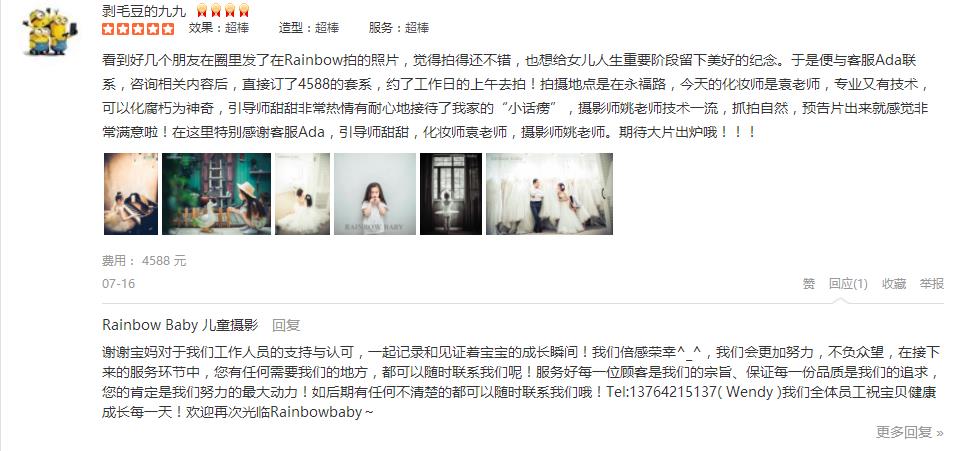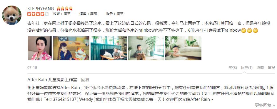 去年娃一岁在网上找了很多最终选了这家,看上了这边的日式的布景,很新颖,今年马上两岁了,本来还打算再拍一套,但是今年貌似没有啥新的布景,价格也水涨船高了很多,涨价之后和他家的rainbow也差不了多少了,所以今年打算尝...