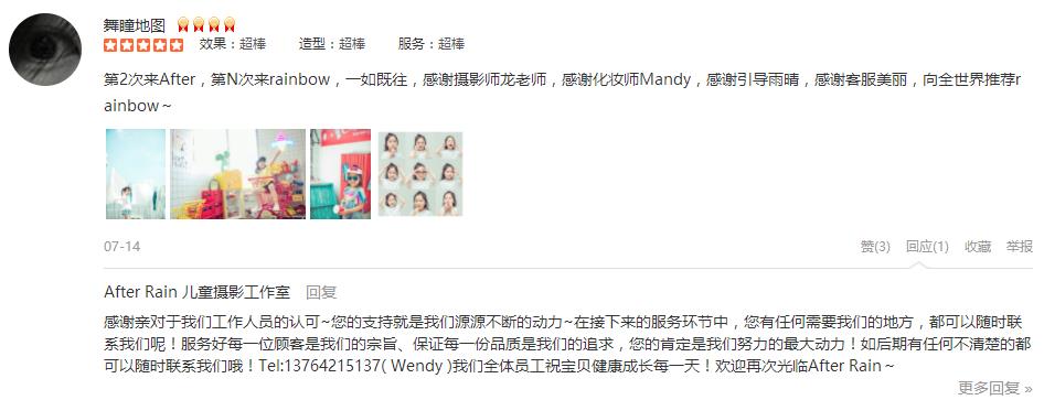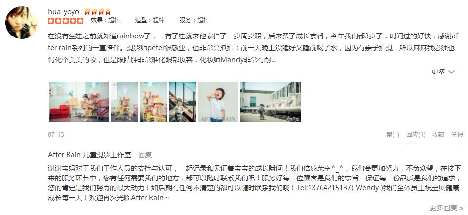 在没有生娃之前就知道rainbow了,一有了娃就来他家拍了一岁周岁照,后来买了成长套餐,今年我们都3岁了,时间过的好快,感谢after rain系列的一直陪伴。摄影师peter很敬业,也非常会抓拍;前一天晚上没睡好又睡前喝了水,因为...