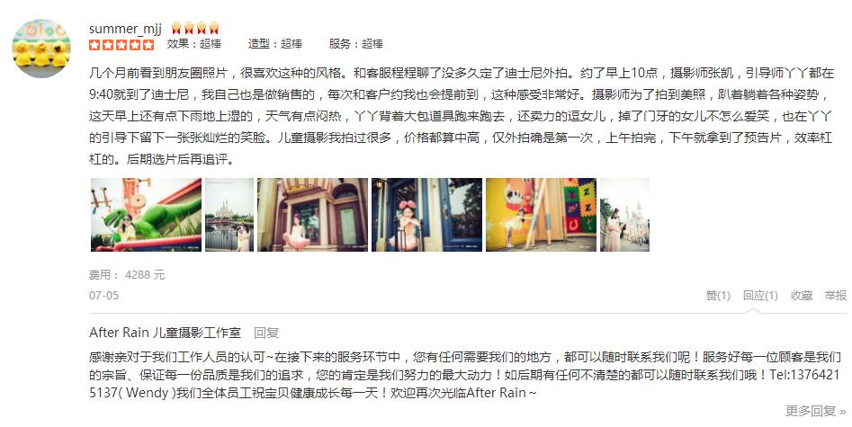 几个月前看到朋友圈照片,很喜欢这种的风格。和客服程程聊了没多久定了迪士尼外拍。约了早上10点,摄影师张凯,引导师丫丫都在9:40就到了迪士尼,我自己也是做销售的,每次和客户约我也会提前到,这种感受非常好。摄影师为了拍...