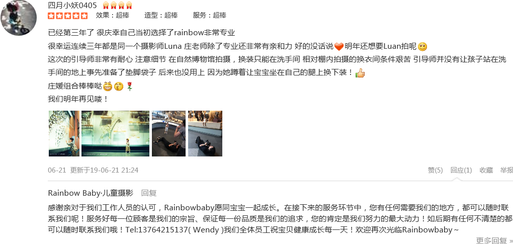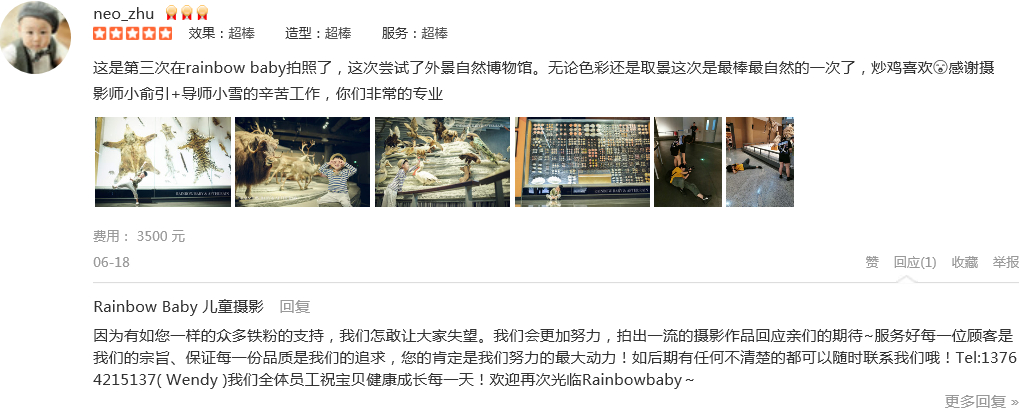 已经第三年了 很庆幸自己当初选择了rainbow非常专业 很幸运连续三年都是同一个摄影师Luna 庄老师除了专业还非常有亲和力 好的没话说爱心明年还想要Luan拍呢微笑 这次的引导师非常有耐心 注意细节 在自然博物馆拍摄...