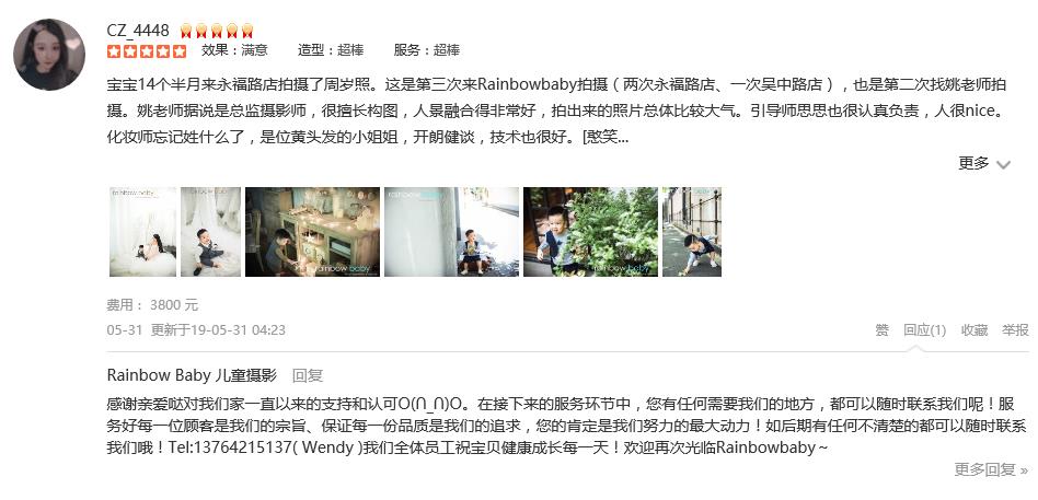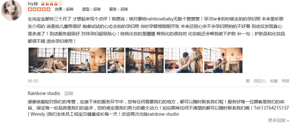 生完宝宝都快三个月了 才想起来写个点评!我想说:绝对要给rainbowbaby无数个赞赞赞!孕30w➕的时候去拍的孕妇照 本来是听朋友介绍的 说是拍儿童照很好 抱着试试的心态去拍的孕妇照 当时孕婴馆刚刚开张 本来还担心会不会...