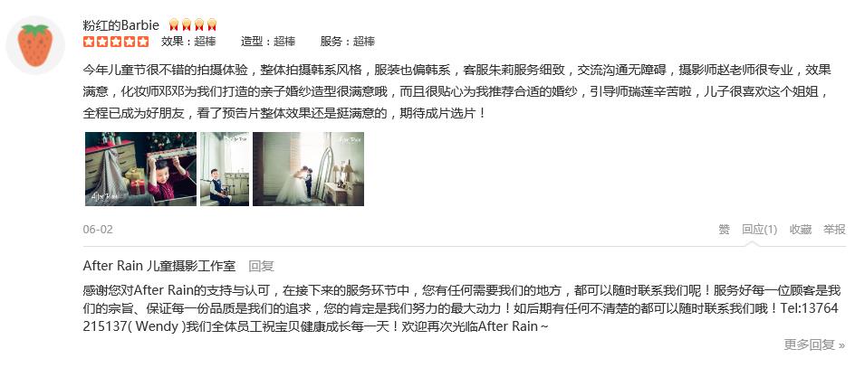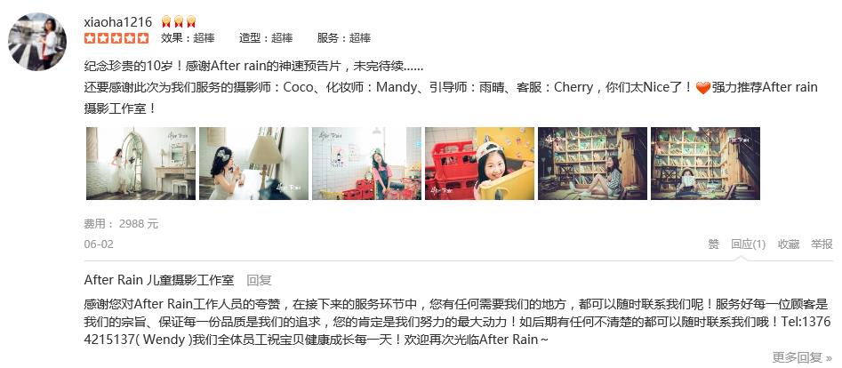 纪念珍贵的10岁!感谢After rain的神速预告片,未完待续…… 还要感谢此次为我们服务的摄影师:Coco、化妆师:Mandy、引导师:雨晴、客服:Cherry,你们太Nice了!爱心强力推荐After rain摄影工作室!