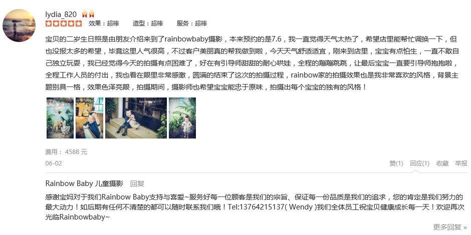 宝贝的二岁生日照是由朋友介绍来到了rainbowbaby摄影,本来预约的是7.6,我一直觉得天气太热了,希望店里能帮忙调换一下,但也没报太多的希望,毕竟这里人气很高,不过客户美丽真的帮我做到啦,今天天气舒适适宜,刚来到店里...