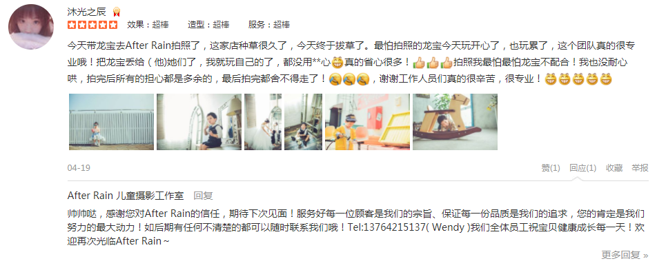 今天带龙宝去After Rain拍照了,这家店种草很久了,今天终于拔草了。最怕拍照的龙宝今天玩开心了,也玩累了,这个团队真的很专业哦!把龙宝丢给(他)她们了,我就玩自己的了,都没用**心呲牙真的省心很多!强强强拍照我最怕最怕...