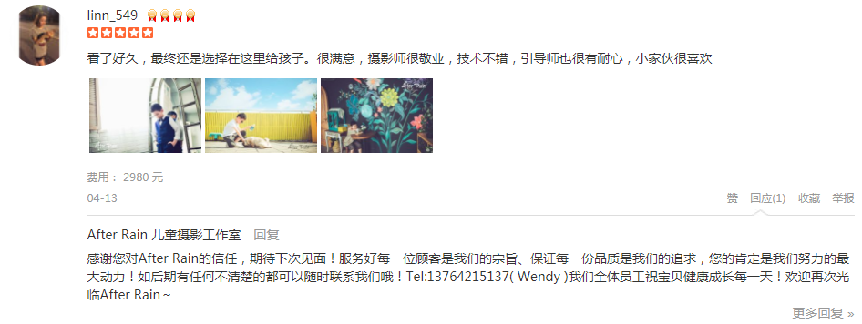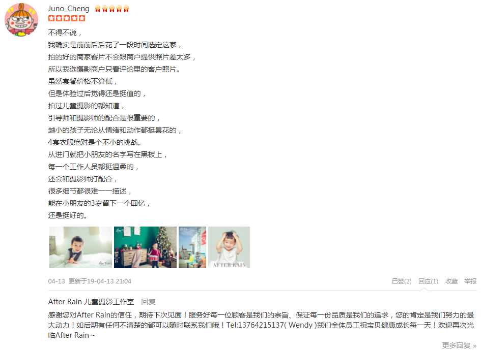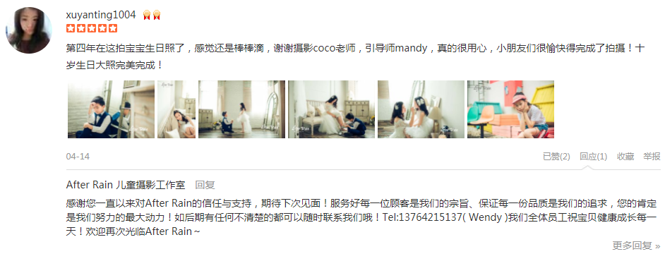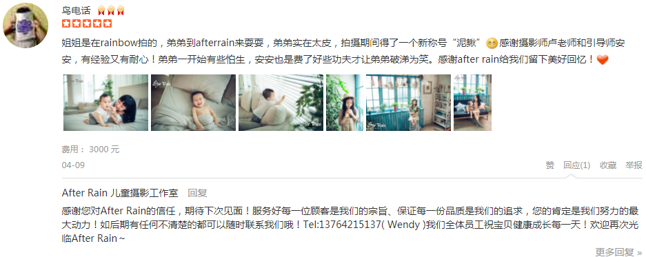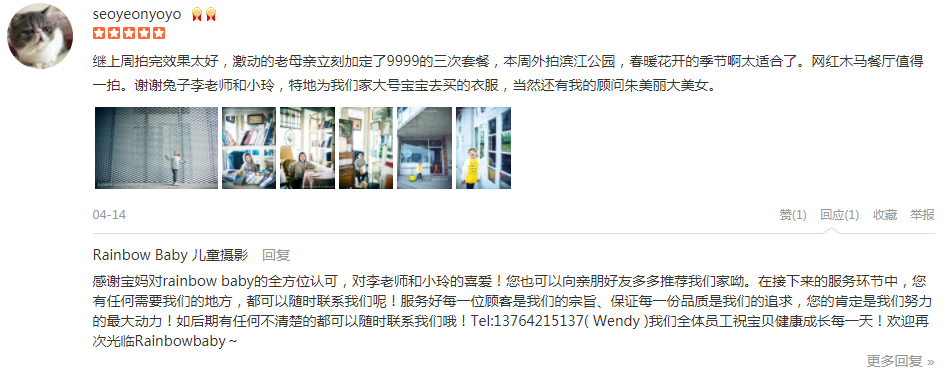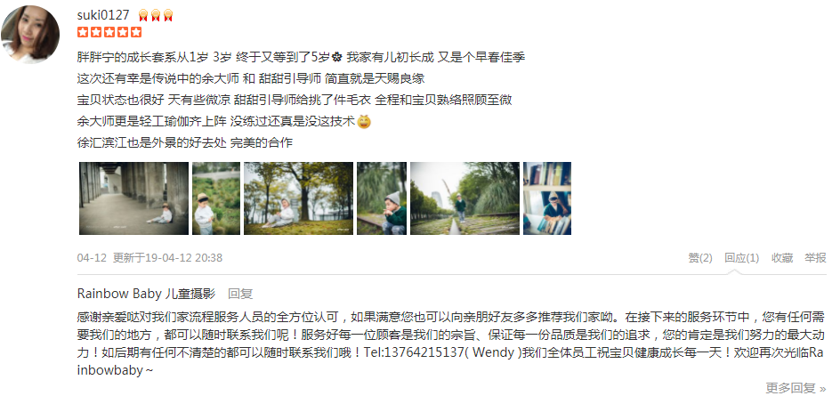 不得不说, 我确实是前前后后花了一段时间选定这家, 拍的好的商家客片不会跟商户提供照片差太多, 所以我选摄影商户只看评论里的客户照片。 虽然套餐价格不算低, 但是体验过后觉得还是挺值的, 拍过儿童摄影的都知...