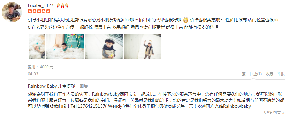 引导小姐姐和摄影小姐姐都很有耐心对小朋友都超nice哦~拍出来的效果也很好哦 呲牙 价格也很实惠哦~ 性价比很高 店的位置也很nice 在老码头这边停车方便~ 很好找 场景丰富 效果很好 场景也会定期更新 都很丰富 能够有...