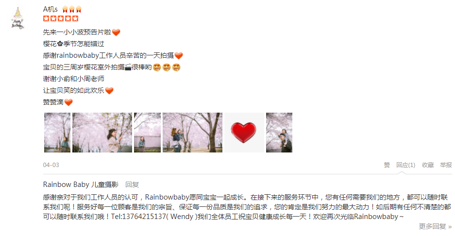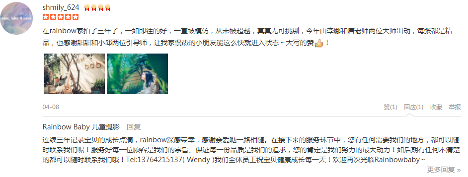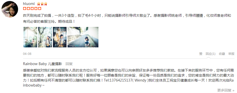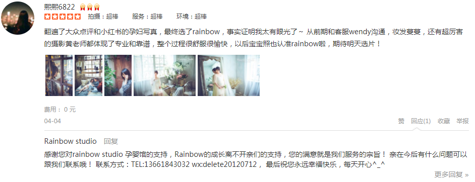 翻遍了大众点评和小红书的孕妇写真,最终选了rainbow,事实证明我太有眼光了~ 从前期和客服wendy沟通,妆发蔓蔓,还有超厉害的摄影黄老师都体现了专业和靠谱,整个过程很舒服很愉快,以后宝宝照也认准rainbow啦,期待明天选...