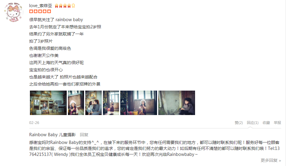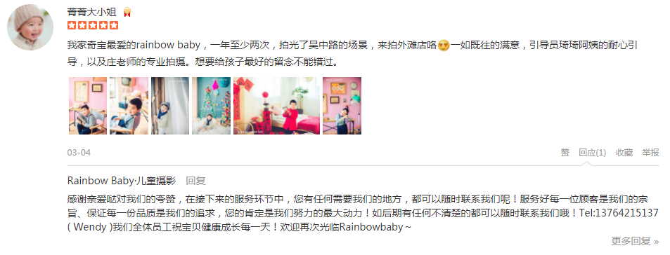 很早就关注了 rainbow baby 去年1月份就定了本来想给宝宝拍2岁照 结果约了另外家就耽搁了一年 拍了3岁照片 色调是我很爱的高级色 也谢谢天公作美 这两天上海的天气真的很好呢 宝宝拍的也很开心 也是越来越大...