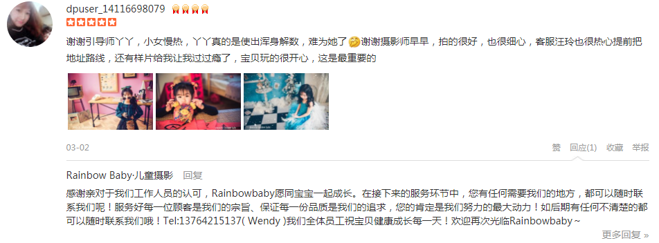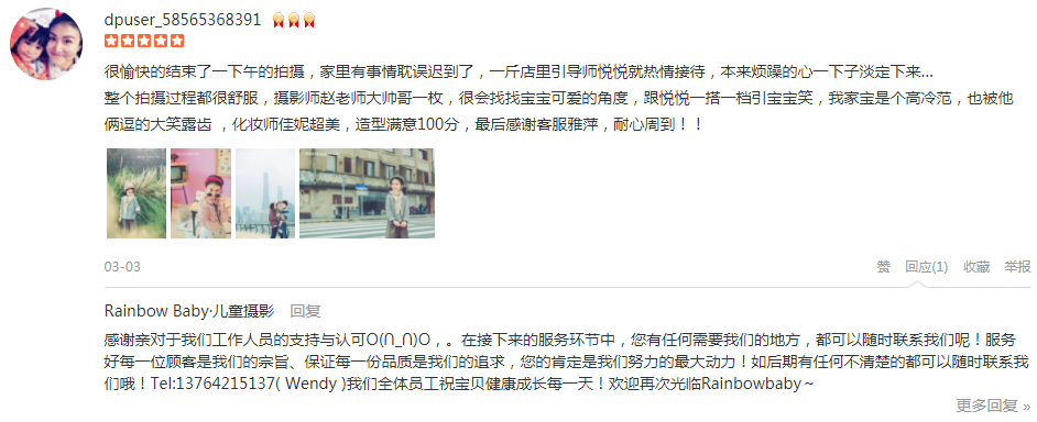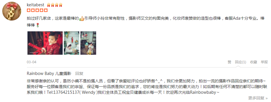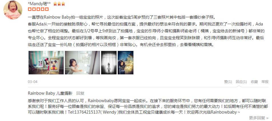 一直想在Rainbow Baby拍一组宝宝的照片,这次趁着宝宝5周岁预约了三套照片其中包括一套婚纱亲子照。 客服Ada从一开始的接触就很耐心,帮忙寻找最佳的拍摄方案,提供最好的想法来符合我的要求。期间我还更欢了一次拍摄时间...