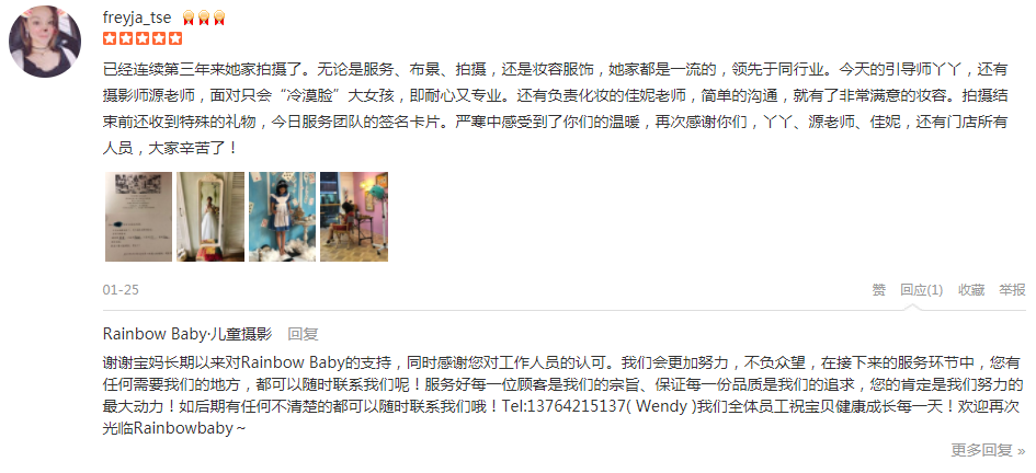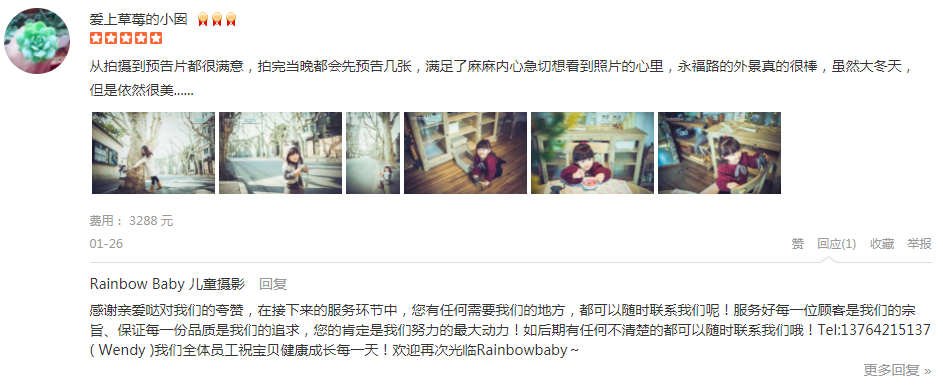 已经连续第三年来她家拍摄了。无论是服务、布景、拍摄,还是妆容服饰,她家都是一流的,领先于同行业。今天的引导师丫丫,还有摄影师源老师,面对只会“冷漠脸”大女孩,即耐心又专业。还有负责化妆的佳妮老师,简单的沟通,就有了非...
