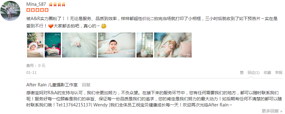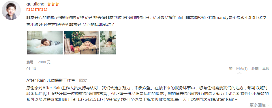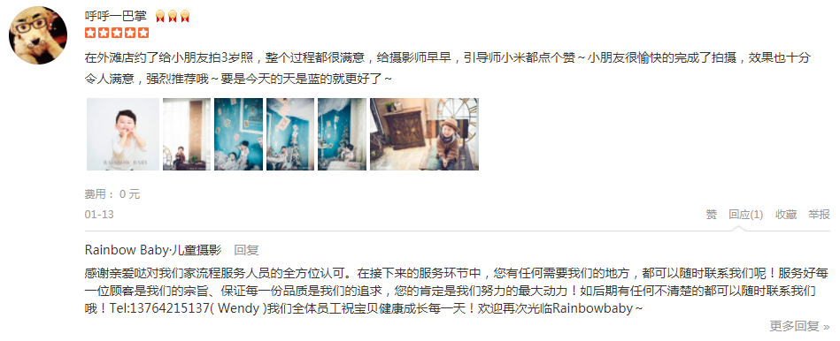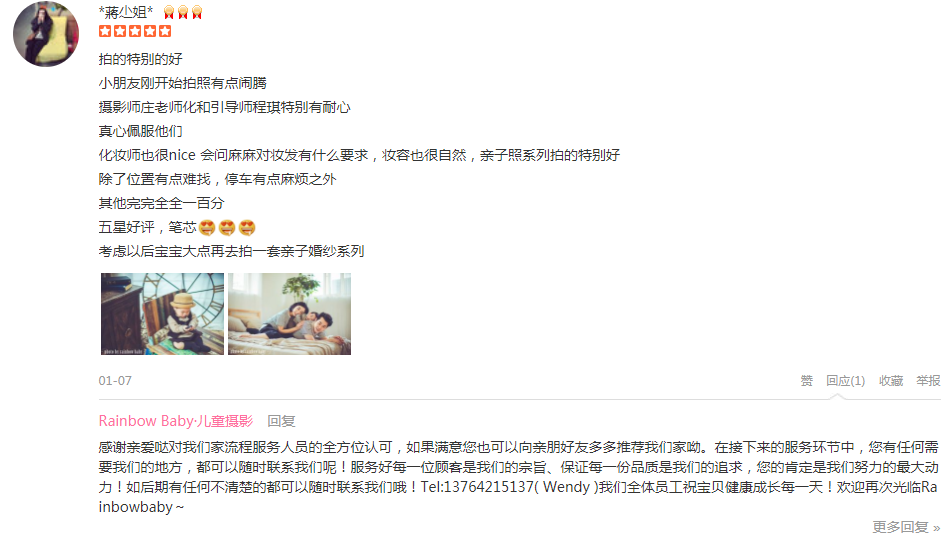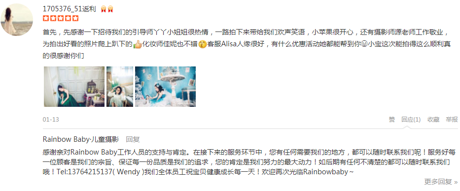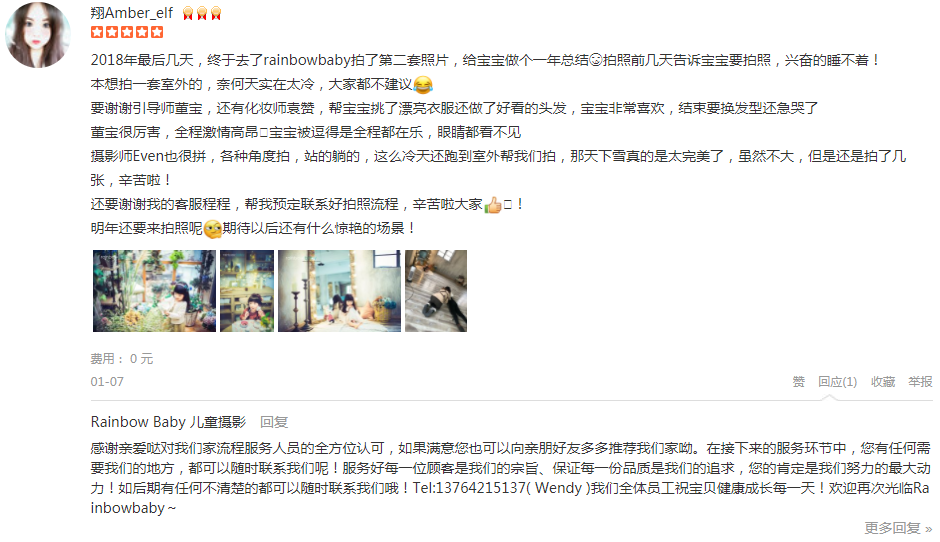 首先,先感谢一下招待我们的引导师丫丫小姐姐很热情,一路拍下来带给我们欢声笑语,小苹果很开心,还有摄影师源老师工作敬业,为拍出好看的照片爬上趴下的强化妆师佳妮也不错亲亲客服Alisa人缘很好,有什么优惠活动她都能帮...