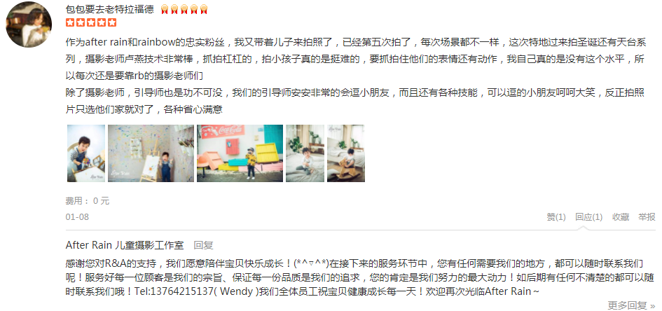 作为after rain和rainbow的忠实粉丝,我又带着儿子来拍照了,已经第五次拍了,每次场景都不一样,这次特地过来拍圣诞还有天台系列,摄影老师卢燕技术非常棒,抓拍杠杠的,拍小孩子真的是挺难的,要抓拍住他们的表情还有动作,...