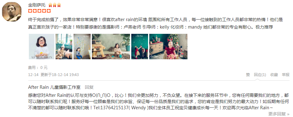 终于完成拍摄了,效果非常非常满意!很喜欢after rain的环境 氛围和所有工作人员,每一位接触到的工作人员都非常的热情!他们是真正喜欢孩子的一家店!特别要感谢的是摄影师:卢燕老师 引导师:kelly 化妆师:mandy 她们都非...