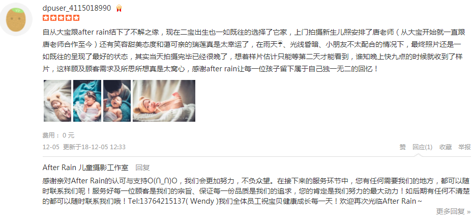 自从大宝跟after rain结下了不解之缘,现在二宝出生也一如既往的选择了它家,上门拍摄新生儿照安排了唐老师(从大宝开始就一直跟唐老师合作至今)还有笑容甜美态度和蔼可亲的瑞莲真是太幸运了,在雨天☔️、光线昏暗、小朋友不...