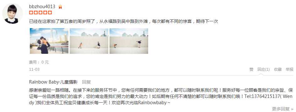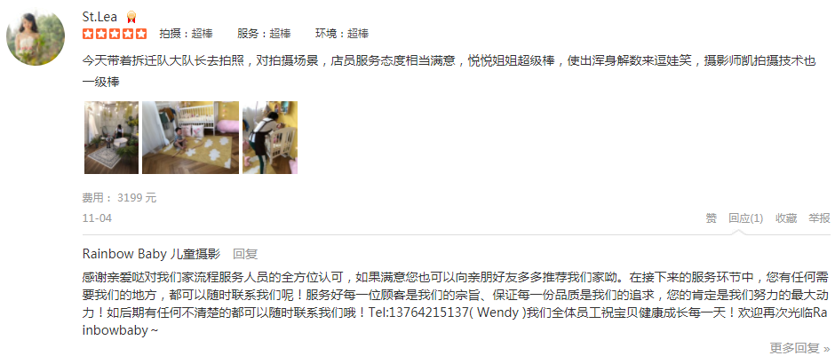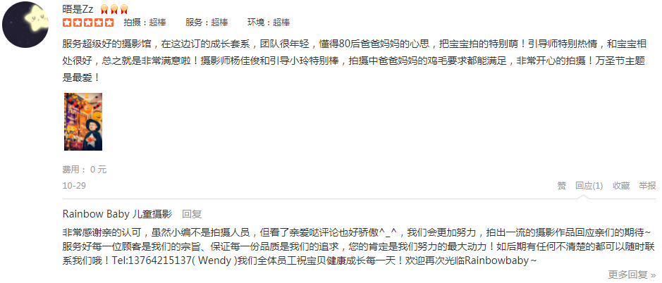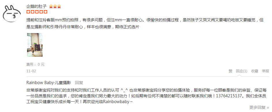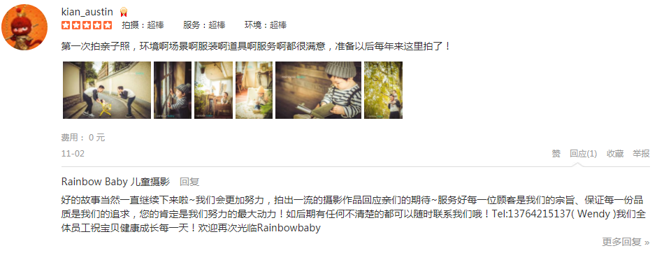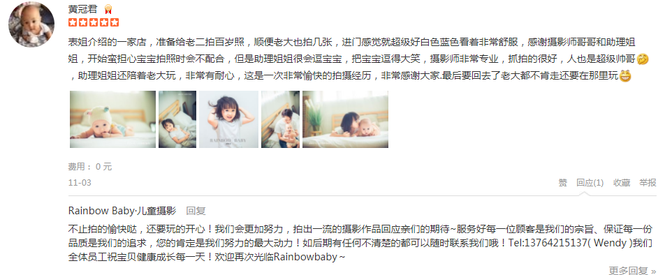 服务超级好的摄影馆,在这边订的成长套系,团队很年轻,懂得80后爸爸妈妈的心思,把宝宝拍的特别萌!引导师特别热情,和宝宝相处很好,总之就是非常满意啦!摄影师杨佳俊和引导小玲特别棒,拍摄中爸爸妈妈的鸡毛要求都能满足,...