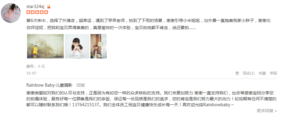 第6次来rb,选择了外滩店,超幸运,遇到了早早老师,拍到了下雨的场景,谢谢引导小米姐姐,出外景一直抱着我家小胖子,谢谢化妆师佳妮,把我和宝贝弄得美美的,真是愉快的一次体验,宝贝拍完都不肯走,说还要拍……