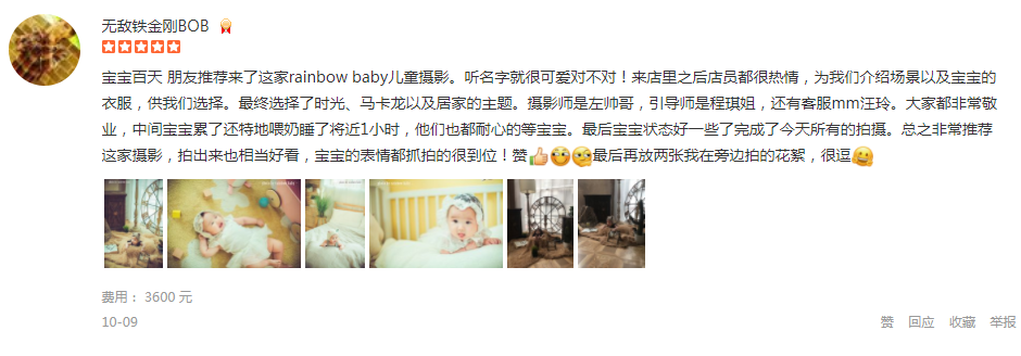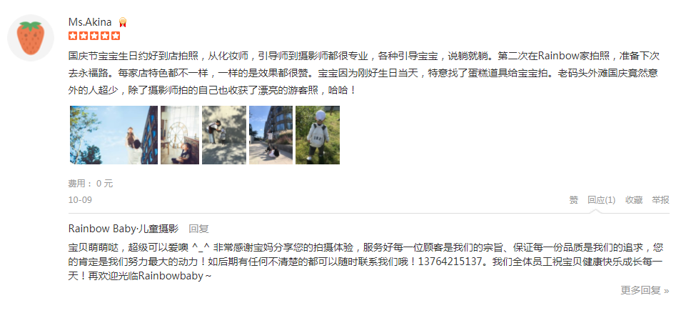 国庆节宝宝生日约好到店拍照,从化妆师,引导师到摄影师都很专业,各种引导宝宝,说躺就躺。第二次在Rainbow家拍照,准备下次去永福路。每家店特色都不一样,一样的是效果都很赞。宝宝因为刚好生日当天,特意找了蛋糕道具给宝宝...