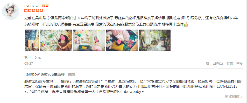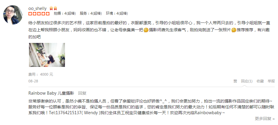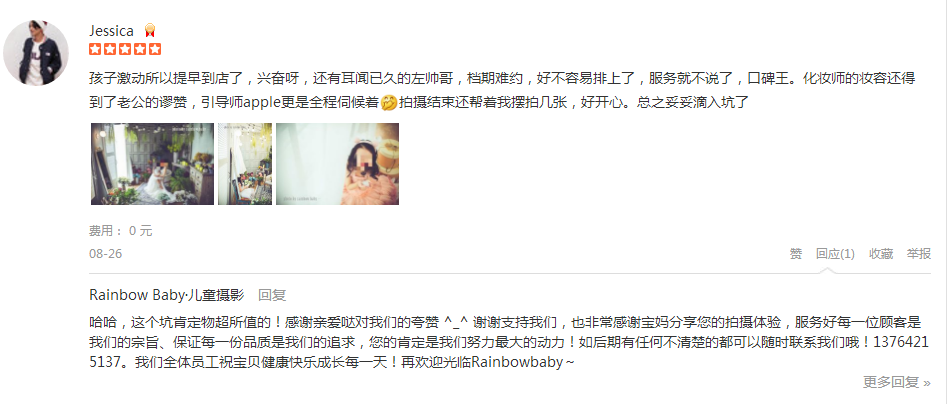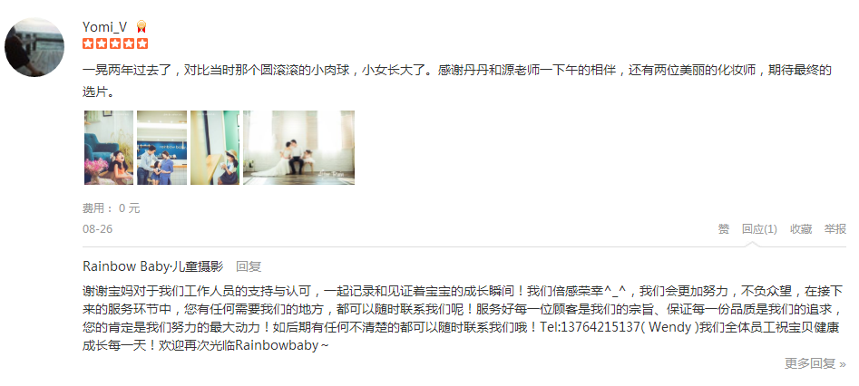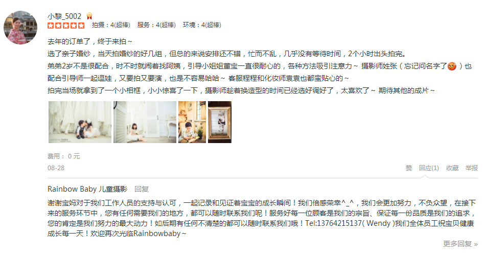 孩子激动所以提早到店了,兴奋呀,还有耳闻已久的左帅哥,档期难约,好不容易排上了,服务就不说了,口碑王。化妆师的妆容还得到了老公的谬赞,引导师apple更是全程伺候着偷笑拍摄结束还帮着我摆拍几张,好开心。总之妥妥滴入坑...