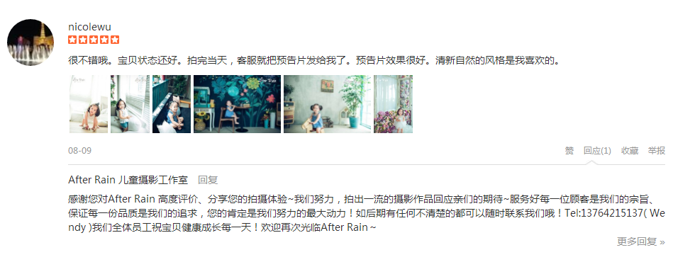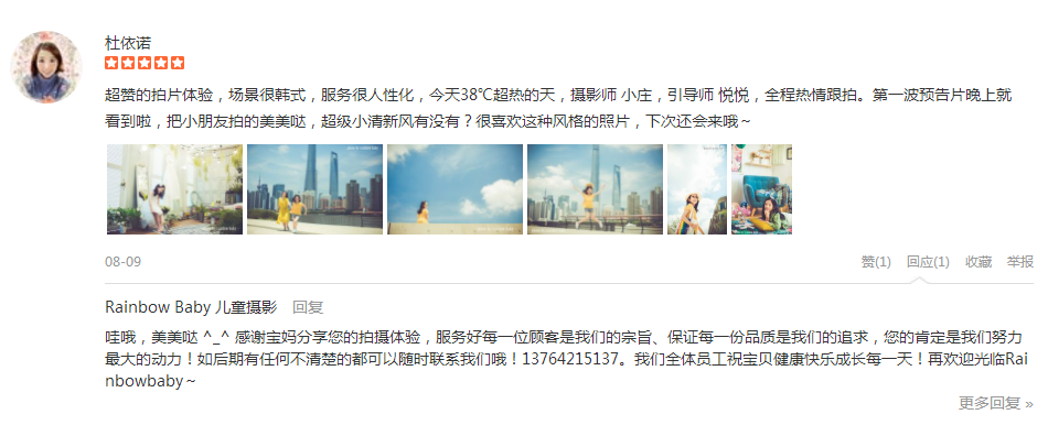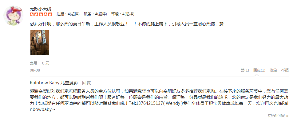 超赞的拍片体验,场景很韩式,服务很人性化,今天38℃超热的天,摄影师 小庄,引导师 悦悦,全程热情跟拍。第一波预告片晚上就看到啦,把小朋友拍的美美哒,超级小清新风有没有?很喜欢这种风格的照片,下次还会来哦~