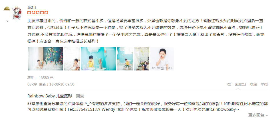 朋友推荐过来的,价钱和一般的韩式差不多,但是场景要丰富很多,外景也都是你想象不到的地方!客服汪玲从预约时间到拍摄后一直有问必答,保持联系!儿子从小拍照就是一个难题,换了很多店都达不到想要的效果,这次开始也是不...