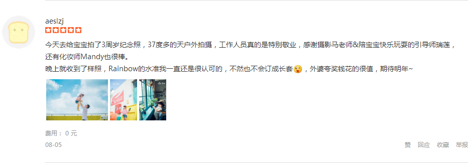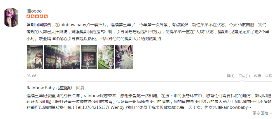 今天去给宝宝拍了3周岁纪念照,37度多的天户外拍摄,工作人员真的是特别敬业,感谢摄影马老师&陪宝宝快乐玩耍的引导师瑞莲,还有化妆师Mandy也很棒。 晚上就收到了样照,Rainbow的水准我一直还是很认可的,不然也不会订成长...