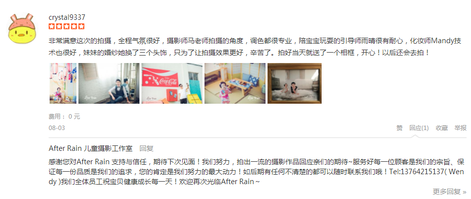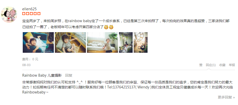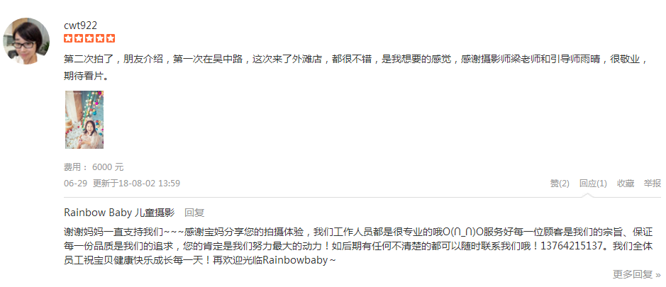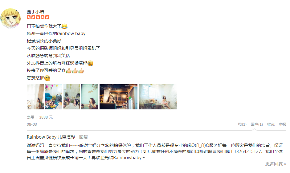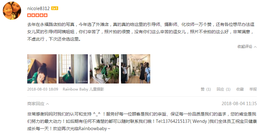 去年在永福路店拍的写真,今年选了外滩店,真的真的给这里的引导师、摄影师、化妆师一万个赞,还有各位想尽办法逗女儿笑的引导师阿姨姐姐,你们辛苦了,照片拍的很赞,没有你们这么辛苦的逗女儿,照片不会拍的这么好,非常满意...