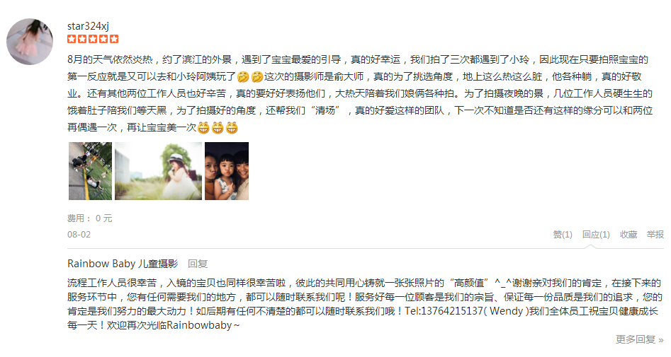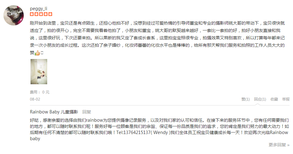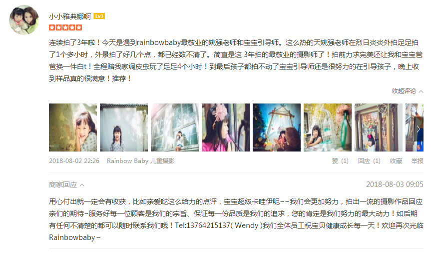 连续拍了3年啦!今天是遇到rainbowbaby最敬业的姚强老师和宝宝引导师。这么热的天姚强老师在烈日炎炎外拍足足拍了1个多小时,外景拍了好几个点,都已经数不清了。简直是这 3年拍的最敬业的摄影师了!拍前力求完美还让我和宝...