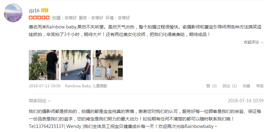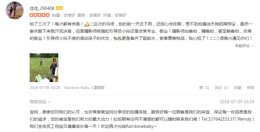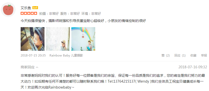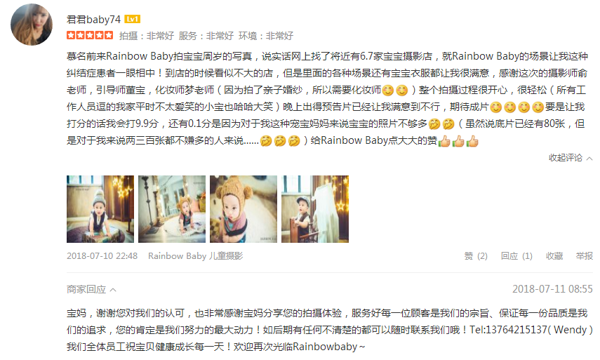 慕名前来Rainbow Baby拍宝宝周岁的写真,说实话网上找了将近有6.7家宝宝摄影店,就Rainbow Baby的场景让我这种纠结症患者一眼相中!到店的时候看似不大的店,但是里面的各种场景还有宝宝衣服都让我很满意,感谢...