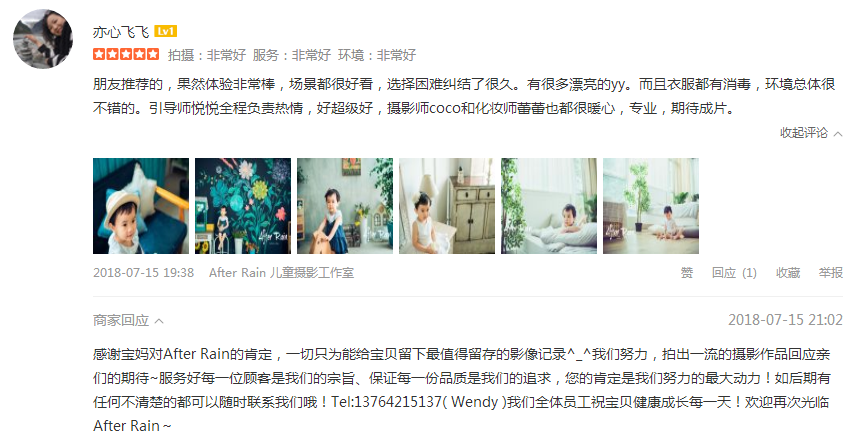 朋友推荐的,果然体验非常棒,场景都很好看,选择困难纠结了很久。有很多漂亮的yy。而且衣服都有消毒,环境总体很不错的。引导师悦悦全程负责热情,好超级好,摄影师coco和化妆师蕾蕾也都很暖心,专业,期待成片。