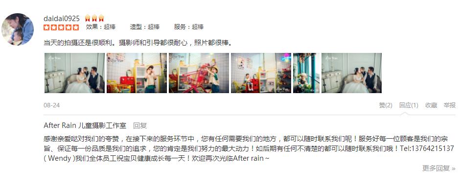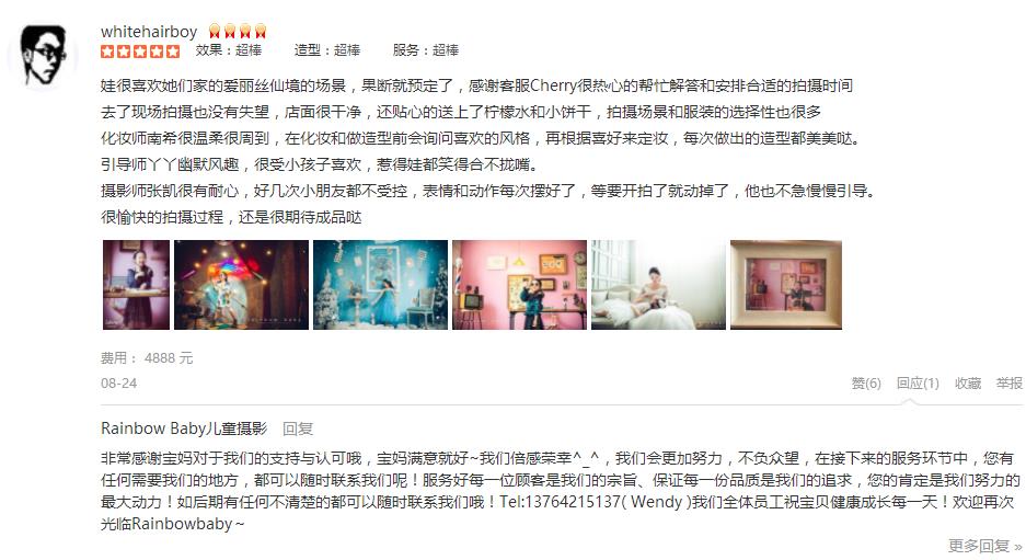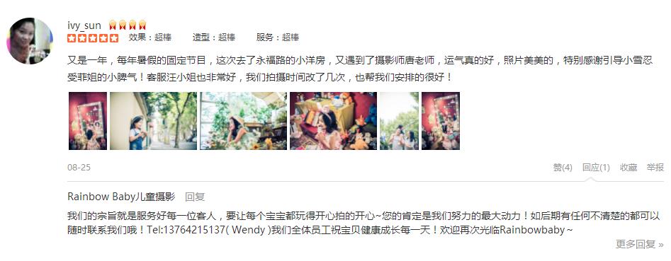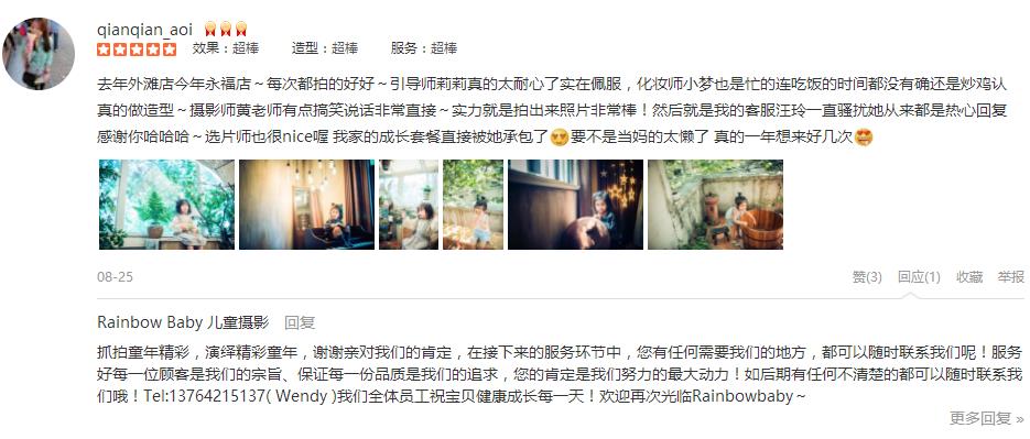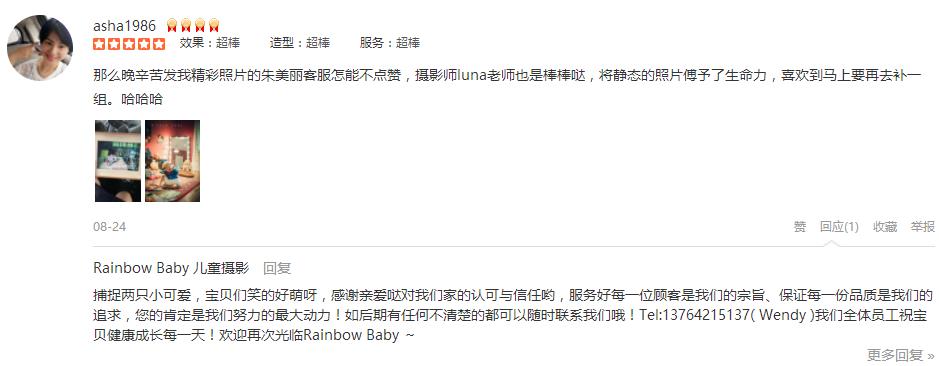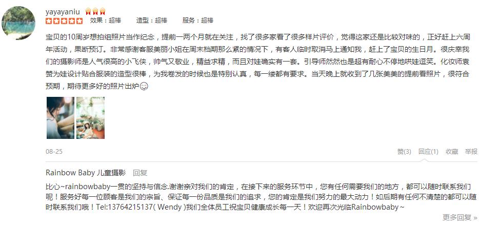 同学妈妈介绍的,他们去年也拍了一套,非常漂亮!今年正好周年庆,就一起订了一套,真的好棒好漂亮!甜甜的客服朱丽帮忙预定、下单、确认,很仔细,很认真,拍摄前两天还再发了个小问卷给我们,以便较快的可以先做好准备!我们到店...