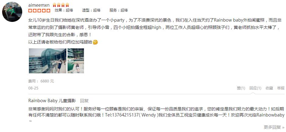 女儿10岁生日我们给她在深坑酒店办了一个小party,为了不浪费深坑的景色,我们在入住当天约了Rainbow baby外拍闺蜜照,而且非常幸运的约到了摄影师黄老师,引导师小雪,四个小妞拍摄全程超high,两位工作人员超细心的照顾孩...