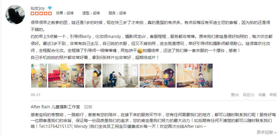很早很早之前参的团,娃还是1岁的时候,现在快三岁了才来拍,真的是囤的有点多。有点后悔没有买迪士尼的套餐,因为拍的还是很不错的。 约的早上9点第一个,引导师kelly,化妆师mandy,摄影师龙sir,客服程程,服务都非常棒。原来...