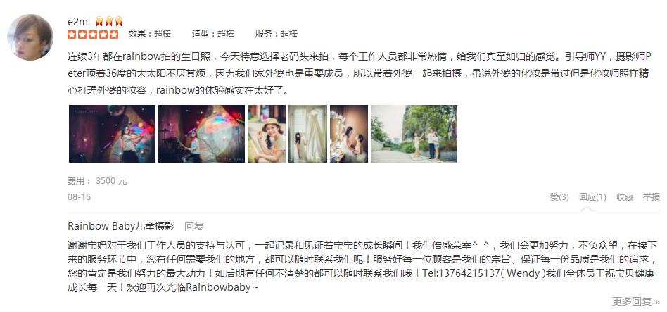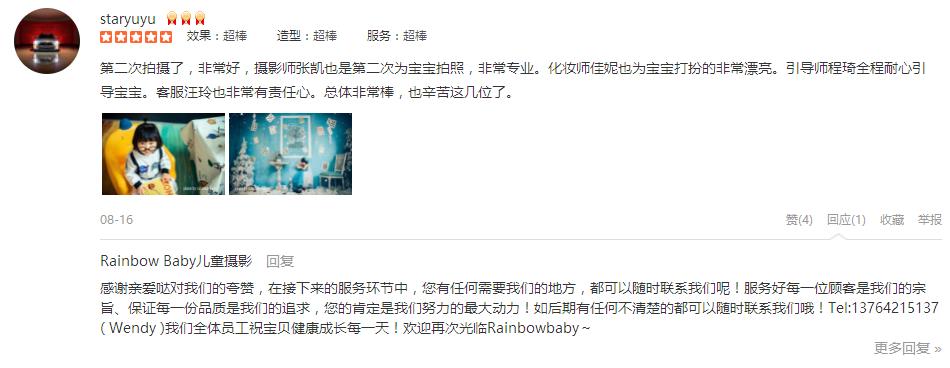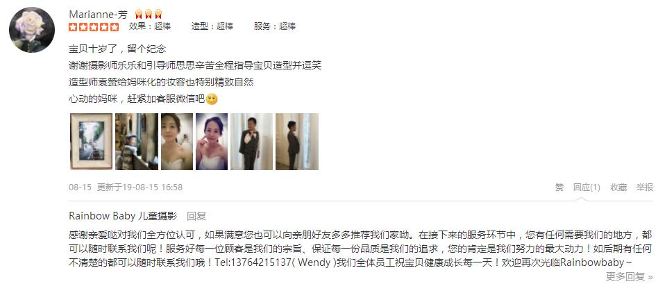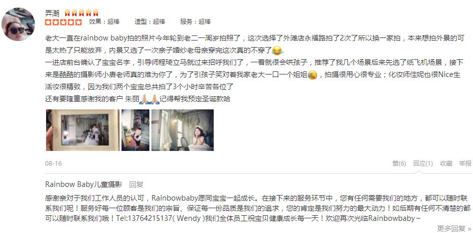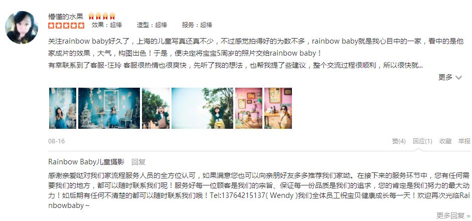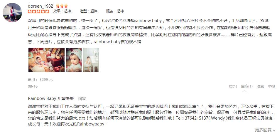 双满月的时候也是这里拍的,快一岁了,也没犹豫仍然选择rainbow baby,完全不用担心照片会不会拍的不好,出品都是大片。双满月开始就是跟客服程程联系,这次一周岁,也是很及时的告知有周年庆活动,小朋友小拍摄不那么合作,在...