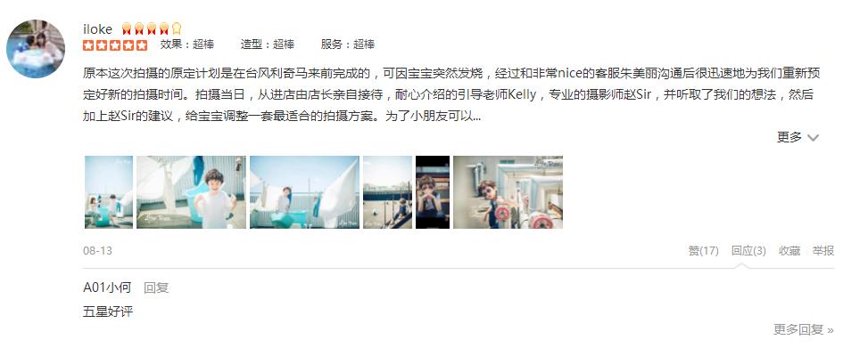 原本这次拍摄的原定计划是在台风利奇马来前完成的,可因宝宝突然发烧,经过和非常nice的客服朱美丽沟通后很迅速地为我们重新预定好新的拍摄时间。拍摄当日,从进店由店长亲自接待,耐心介绍的引导老师Kelly,专业的摄影师赵...