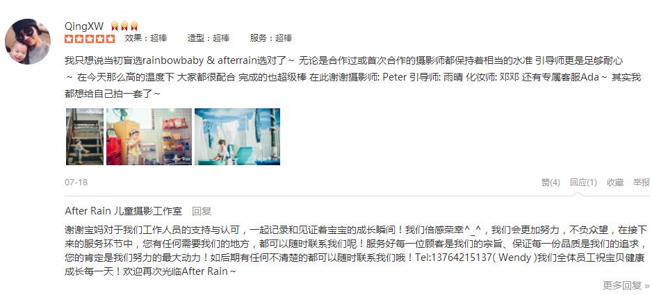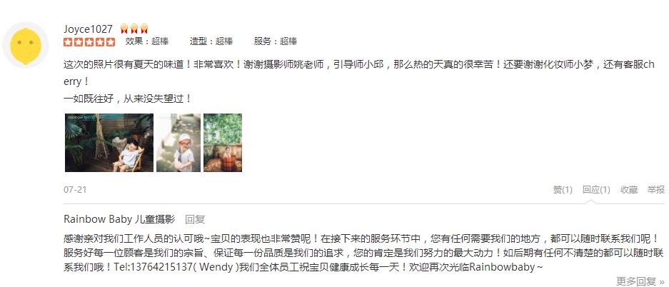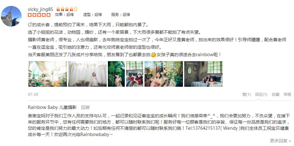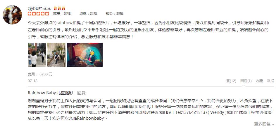 今天去外滩点的rainbow拍摄了十周岁的照片,环境很好,干净整洁,因为小朋友比较慢热,所以拍摄时间较长,引导师媛媛和摄影师左老师耐心的引导,最后还加了2个帮手姐姐,一起在努力的逗乐小朋友,体验感非常好,再次感谢左老师...
